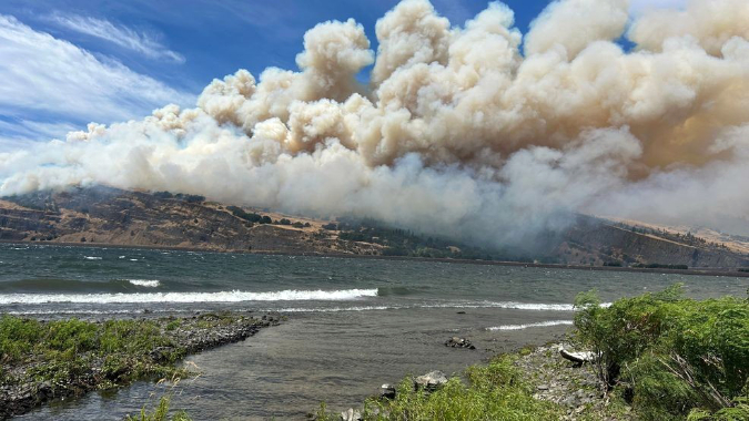 The Burdoin Fire was already moving east toward Coyote Wall on July 18, 2025, just hours after it started (photo: KVAL)