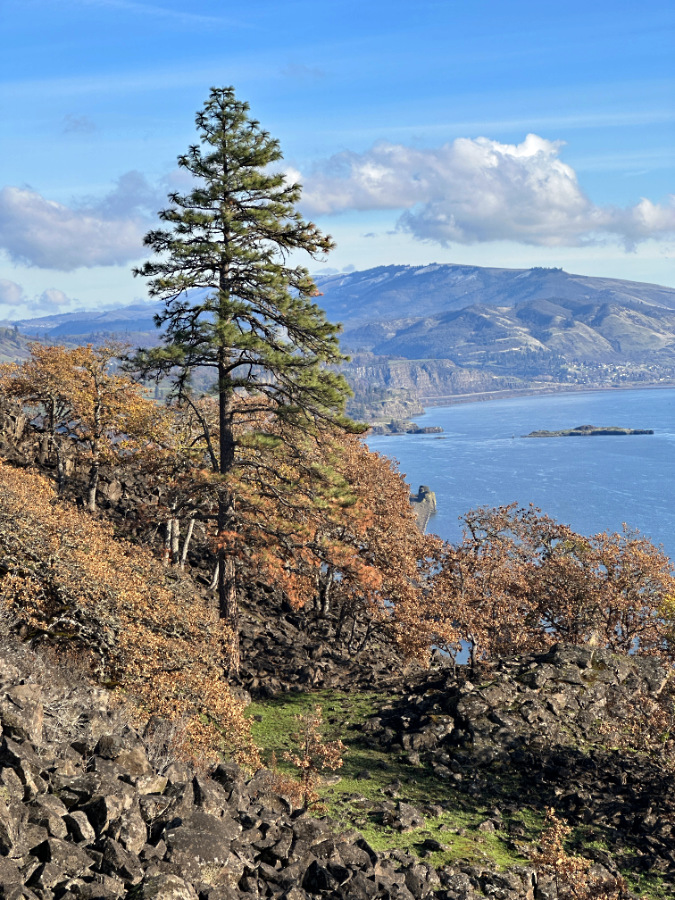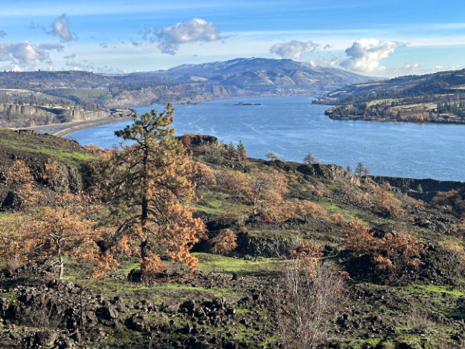 By the time it was controlled in mid-August, the fire had burned a swath nearly 10 miles long and blackened more than 11,000 acres. Though the town of Lyle was spared, more than 100 structures were lost in the fire. No lives were reported lost in the event. The full scope of the impact on the Oak Savannah ecosystem remains unknown until spring, when it will become clear how the Oregon white oak trees fared. This 3-part series of articles is a snapshot in time as of early December, when the ecosystem recovery had visibly begun, but with many questions about long-term resiliency unanswered.