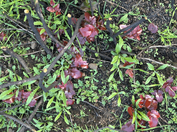 If it didn’t make us itch, we’d grow it in our gardens. Useful to all but humans, these Poison oak are bouncing back with vigor from their surviving roots and underground stems. Sorry, hikers!