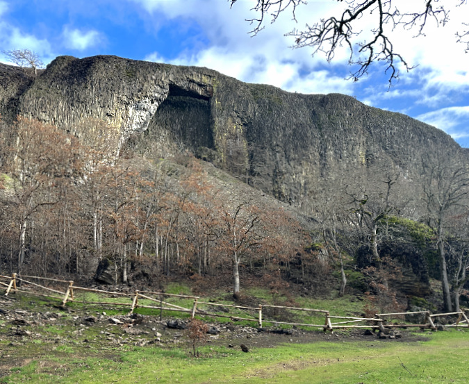 Another surprise along the old road are several groups of Bigleaf Maple, a species that thrives in Cascade rainforests. These unlikely trees manage to carve out a niche in this desert environment where they typically grows along basalt walls that provide both weather protection and provide groundwater seeps to help them survive hot summers.