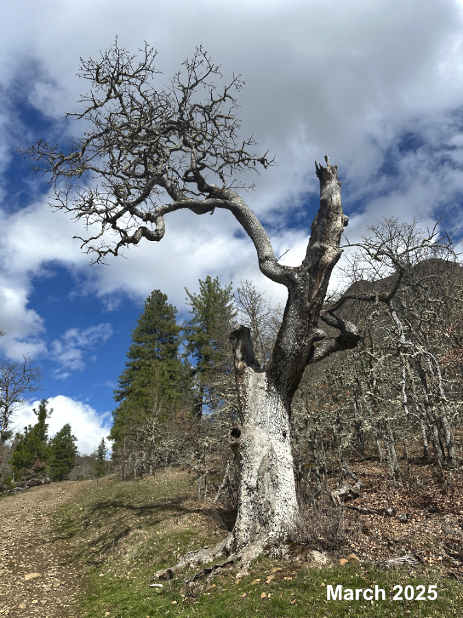 What does the “1” stand for in this unofficial trail marker? It dates back to a brochure and map once published by the Forest Service that described the history of the Cloud Cap area by numbered waypoints along the road. This signpost and an old, mounted wagon wheel further up the road are all that remains from that effort to share the local history. I do plan to feature the brochure in a future blog article, along with mileage waypoints to guide visitors, in lieu of the old markers that were once here.