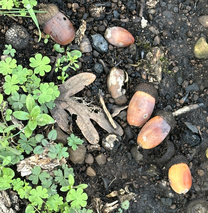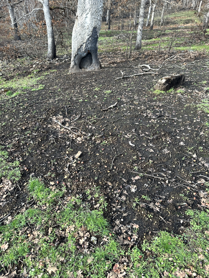Bigleaf Maple are the real stars in this comeback story, with most growing from the surviving stump of a parent tree killed by the fire. The new access to sunlight and explosive growth also makes for super-sized foliage, with individual leaves measuring nearly a foot across (below) underscoring the common name for these essential trees.
