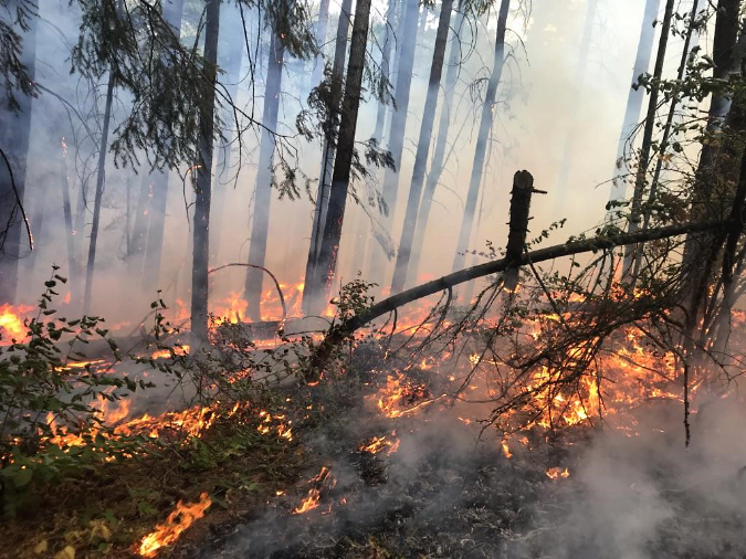 Fog swirling through an east side forest of Larch, true firs, Douglas fir and Ponderosa pine