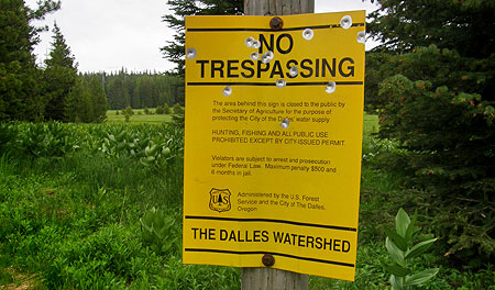 After publishing this article, I noticed that the Forest Service and City of The Dalles have been busy posting the boundaries of The Dalles Water Watershed, again, including the informal trailhead at Brooks Meadow.