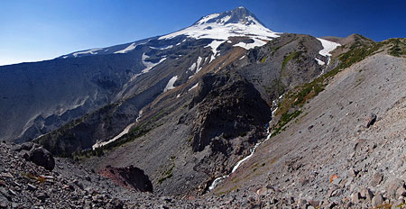 In fact, without this broad rib of volcanic rock to shore up its eastern side, the very summit of Mount Hood might well have been further eroded during the series of glacial advances that have excavated the peak.