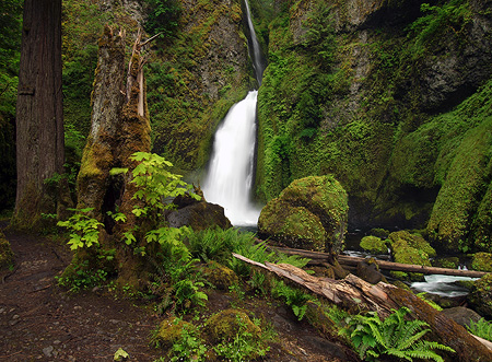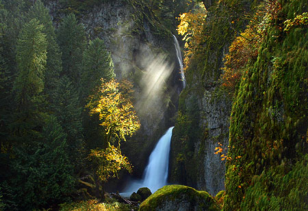 Though hardly a secret anymore , the hike to Wahclella Falls remains a less traveled alternative to other short waterfall hikes in the Gorge. The trail is generally open year-round, though the best times for photography are in May/June, when spring greenery is at its peak, and in late October, when the bigleaf maples light up the forest with bright yellow and orange hues.
