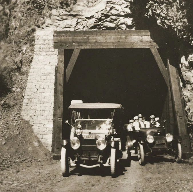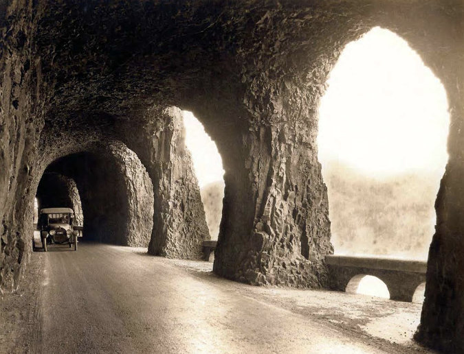 The Oneonta Tunnel in about 1915,, soon after it opened and before this section of the Historic Columbia River Highway was paved