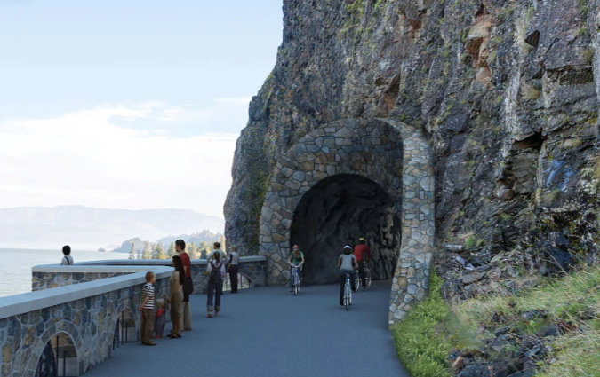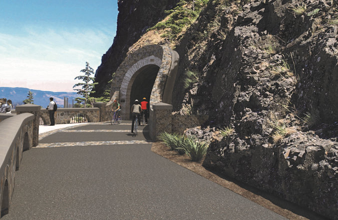 The west portal design for the new tunnel preserves this relatively new (2013) overlook at Mitchell Point, already a popular stop for Gorge visitors