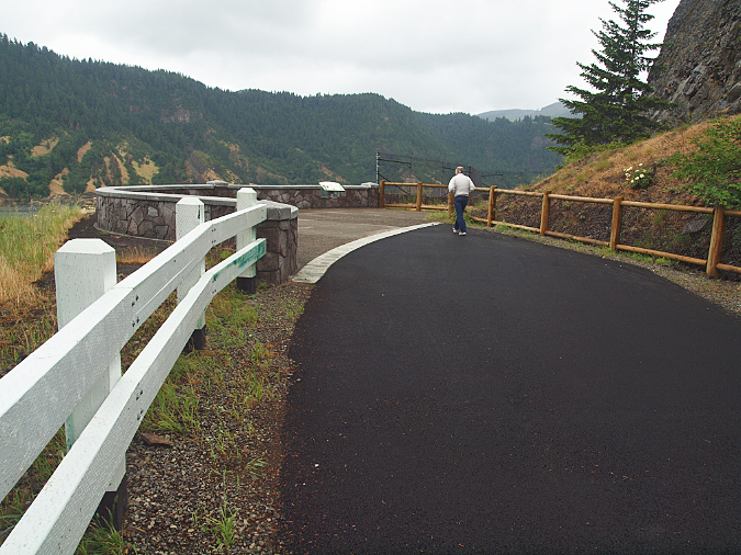 Will Mitchell Point become as crowded as Angels Rest? Maybe someday, though not anytime soon, simply because it’s much farther from Portland. But it will certainly become more popular than it is today, as foot traffic here has steadily grown over the past decade or so. With this in mind, one of the disappointments of the Mitchell Point project is the failure to plan for future crowds, and especially to differentiate between visitor types in the planned parking improvements. In the past, most visitors to Mitchell Point were there to walk to the existing overlook at the wayside, spending just a few minutes there while on their driving tour of the Gorge. Hikers, meanwhile, can spend several hours laboring up the steep path to the summit.