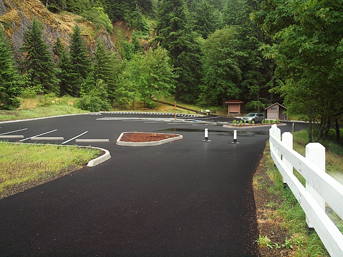 There are a couple of solutions that ODOT and OPRD could easily incorporate into the current construction phase without rivisitng the basic parking plan. First, mark a few parking spots for short-term, 30-minute parking for touring motorists to visit the wayside viewpoint and walk the new tunnel. Yes, it would have to be enforced to be effective, but even sporadic enforcement with a healthy fine would send a shockwave through hiking social media sites.