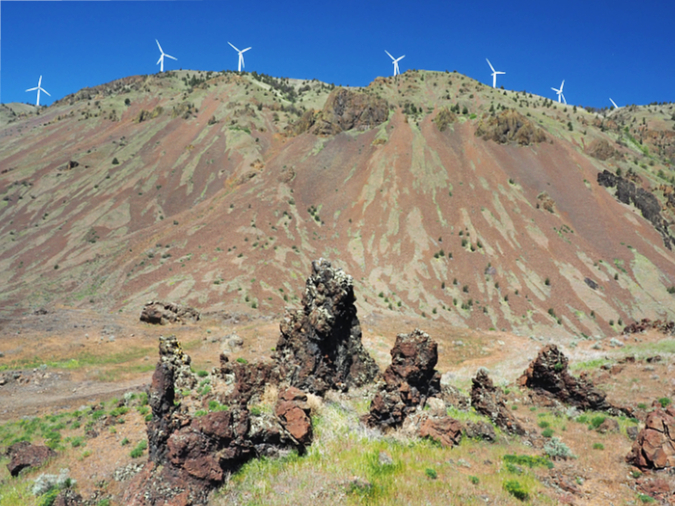 These beautiful, mosaic talus slopes along the Columbia Hills are ground zero for a proposed energy project that threatens to change the area forever. A jarring sea of giant wind turbines were installed along the crest of what is a sacred ridge for area tribes over the past 15 years, and now the turbines are the basis for still more energy development in this unprotected part of the Gorge