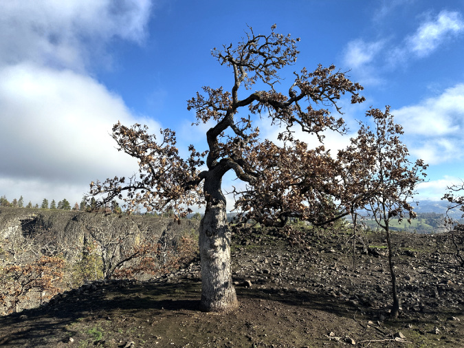 At first glance, this oak grove seems to have survived the fire. But it isn’t a grove at all…
