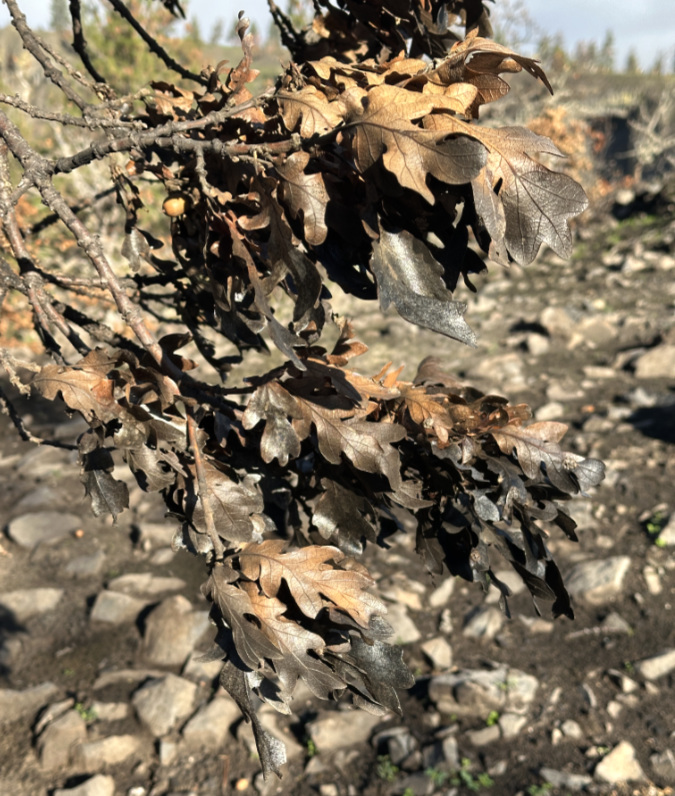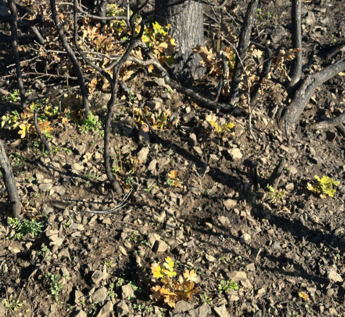 For us, this could mean decades before we will see mature oaks again in the most intensely burned part of the Burdoin fire. For the oak trees, this is an expected, cyclical event in their ecosystem they have evolved to rely upon, and a recovery process they have repeated time and again over the millennia.