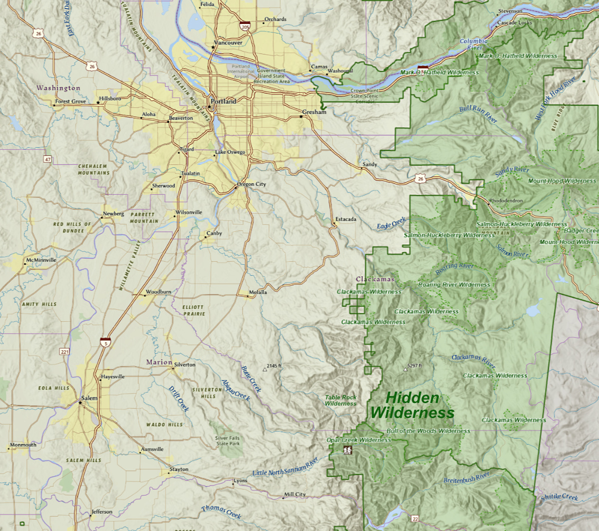 While I’ve highlighted what most consider to be the Mount Hood Wilderness on this map, several nearby wilderness areas have been created or expanded since the 1980s, including the Salmon-Huckleberry Wilderness and Badger Creek Wilderness, as well as smaller pocket-wilderness additions at places like Twin Lakes and Tom Dick and Harry Mountain. Should these areas be included in the campfire ban, too?