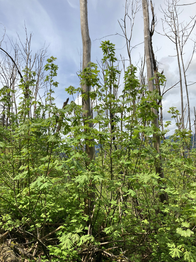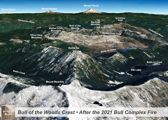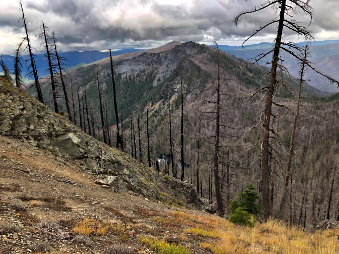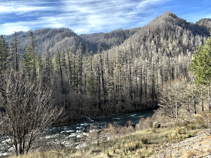 Not out of the woods with our fire season, just yet. The human-caused Riverside Fire started on September 8, 2020 and eventually burned 138,000 acres of the Clackamas River basin over the following weeks, much of the burn hot enough to create ghost forests where nothing survived. This scene looking into the Whale Creek basin is one of those places.