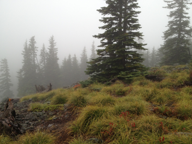 The campfire threat to Whitebarks comes from being hacked apart for scarce firewood this far above the tree line. However, Mountain hemlock and other subalpine species are continuing to spread upward in elevation in our warming climate, infiltrating the once isolated Whitebark Pine groves, and thus increasing their exposure to wildfire.