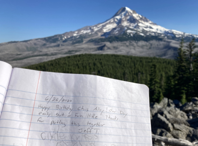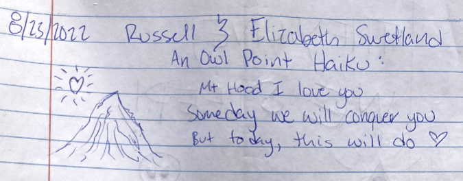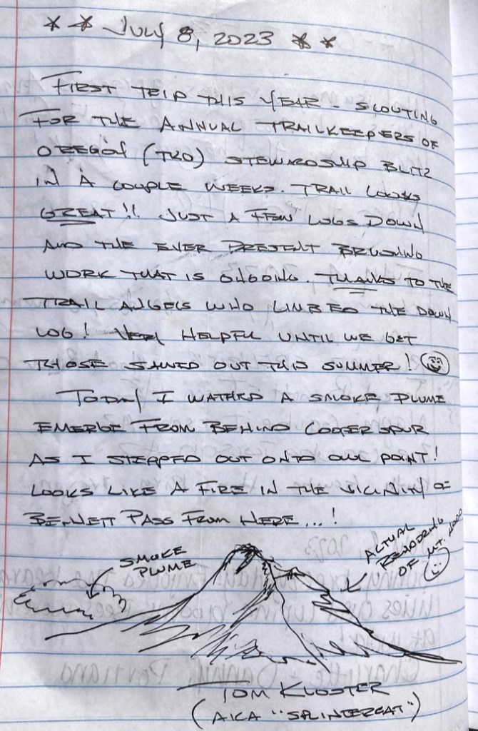 I’ll close with a photo of one of my favorite Whitebark pine ancients (above). It has likely been growing in this sandy flat near the crest of Gnarl Ridge for at least a couple centuries. And it therefore likely witnessed multiple eruptions of smoke and ash from Mount Hood in the late 1700s as a young tree, the last major eruptive period on the mountain.