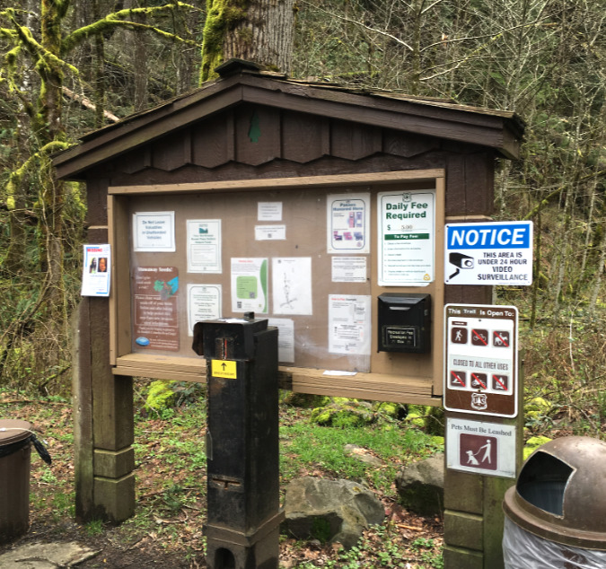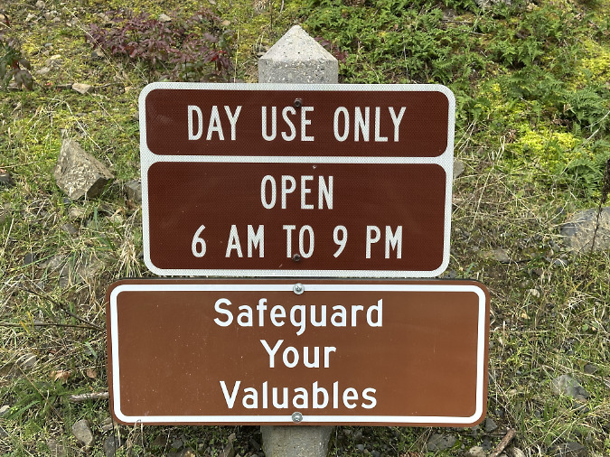 There’s a lot of information at Mount Hood’s wilderness access points. Look closely at this sign at the Cloud Cap trailhead and you might find the limited restrictions on campfires (circled)…