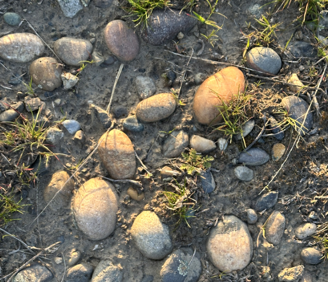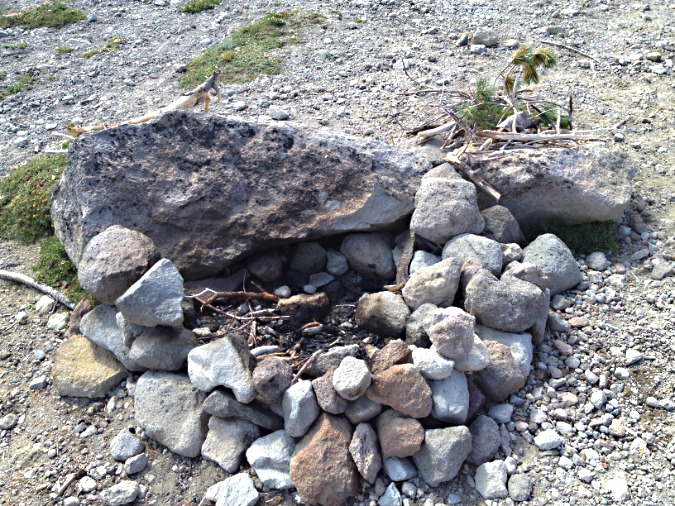 A closer look at the 2014 fire ring. The boulder is charred from many fires built here, but the rest of this ring was new, as you can see by the mostly uncharred, smaller rocks