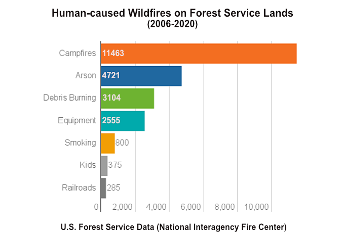 Campfires are the overwhelming human cause of wildfires