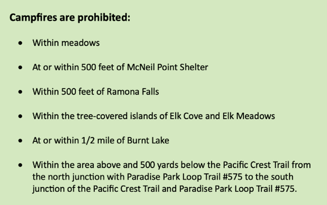 Mount Hood Wilderness regulations on campfires (USFS)