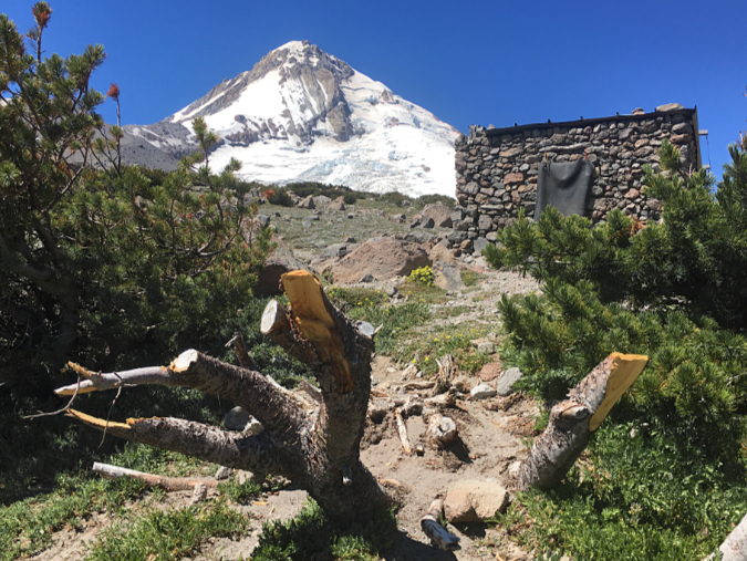 This unlucky Whitebark pine has been harvested down to a stump for firewood at the Cooper Spur Shelter