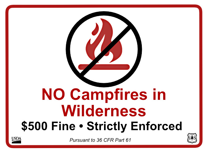 …and a closer view of the campfire restrictions from the above wilderness trailhead sign. The wording here is simplified from the official regulations, yet still quite nuanced for visitors unfamiliar with the wilderness