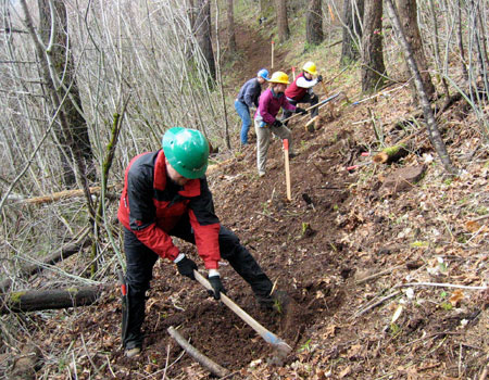 Trailkeepers of Oregon (TKO) volunteers building new trail at Punchbowl Falls Park