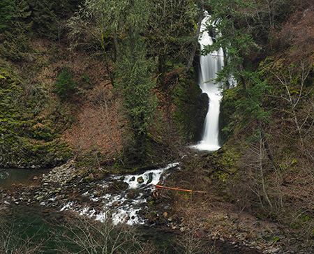 I was standing out in the middle of Starvation Creek on Christmas Eve last month with my camera on a tripod for long exposures. The Gorge streams were running high after weeks of steady rainfall, and I was mostly trying to keep spray off the lens that day. My embarrassingly large, overly stuffed winter backpack was sitting maybe 20 feet above me on the short user trail that follows the east side of the creek in this popular rest stop – just out of earshot. That’s where things went very wrong.