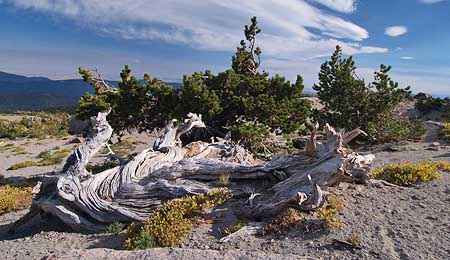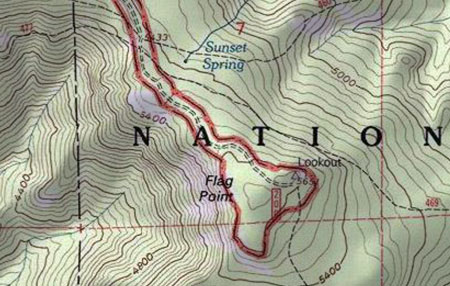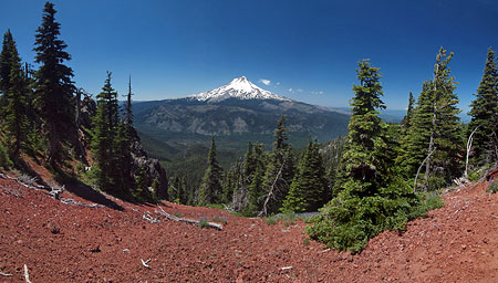 If you’re not an avid hiker and looking for a short side trip on your way to Cloud Cap, watch for the following signpost at an obvious switchback in the road at about the 3 mile mark (below). From the sign, the trail drops roughly 300 feet to the rocky overlook of Inspiration Point.