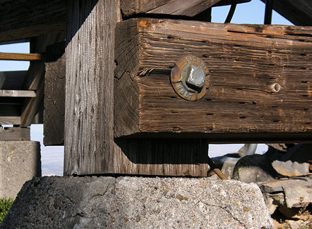 While it’s possible the U.S. Forest Service will repair this, I’m going to guess that it will fall to volunteers that I’ve seen working on the structure in the past. I’ve come across them many times over the years, as early as this view (below) taken 22 years ago, when a group of volunteers was repairing that same south corner of the building. Like most of the trails around Cooper Spur, the shelter also represents an ongoing volunteer effort to ensure it survives.