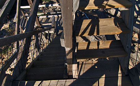 The Cooper Spur Shelter, itself, was also in need of some volunteer tending this year, as the stovepipe in the south corner of the structure has rusted through and that seems to have led to a collapse of the stone wall surrounding it (below).