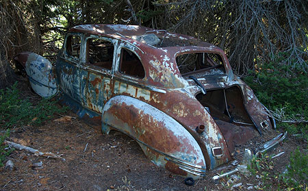 Another surprise along the old road are several groups of Bigleaf Maple, a species that thrives in Cascade rainforests. These unlikely trees manage to carve out a niche in this desert environment where they typically grows along basalt walls that provide both weather protection and provide groundwater seeps to help them survive hot summers.