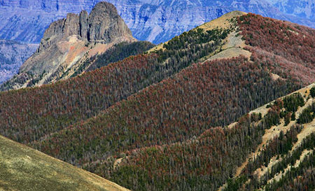 In this view (below), the winter advantage of Western Larch also stands out. While a few of the Larch still have their golden needles, most (like the one in the center) have already dropped their foliage for the winter, making them less susceptible to heavy winter winds and accumulations of snow and ice. Like Ponderosa Pine, Larch are also fire-resistant – making them perfectly adapted to this “fire forest” mountain ecosystem.