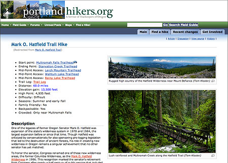This Mark O. Hatfield Trail proposal is for a 60-mile memorial trail that spans the Hatfield Wilderness, beginning at Multnomah Falls and culminating at Starvation Creek Falls, passing through the most rugged, lonely country to be found in the Columbia River Gorge along the way. This new trail would join classic hikes like the Timberline Trail at Mount Hood and the Wonderland Trail at Mount Rainier as premier backpacking destinations of national prominence.