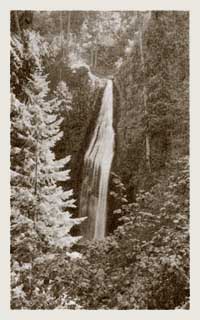 The crater with the Memaloose Bridge and Clackamas River in the distance