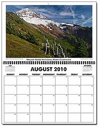 The cover of the 2006 calendar is the first in a series of reminder among the covers that there are no constants in WyEast Country. Everything changes, and lately, change seems to be accelerating, as the cover image of Mount Hood from the Elk Cove trail underscores. Just two years after I took this photo, the Gnarl Fire had roared across the east flank of the mountain, nearly engulfing Cloud Cap Inn. Then, three years after the Gnarl Fire, the Dollar Lake Fire had burned much of the forest on the north slope of the mountain shown in this image.