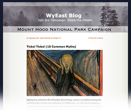 In 2008, I started this blog as an alternative to making constant updates to the campaign website. This opened still more opportunities to explore and capture WyEast country in words and imagery, with deeper dives and more details in the long form that I prefer. As the blog shifted my focus toward emerging risks to Mount Hood and the Gorge, so my photography shifted, and the calendar began to include more remote and obscure places on the mountain.