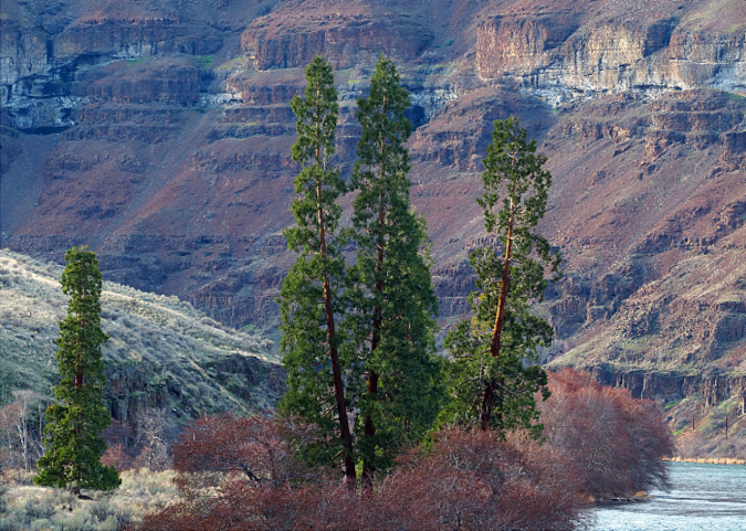For the February image I thought I’d mix things up a bit with this view of the lower Deschutes River canyon at Oak Springs (below), a corner of WyEast Country that not many find their way to. On this day last winter, a dusting of snow had fallen on Tygh Ridge, the long fault scarp that rises in the distance – another lesser visited spot on this lonely, dry side of the mountain.