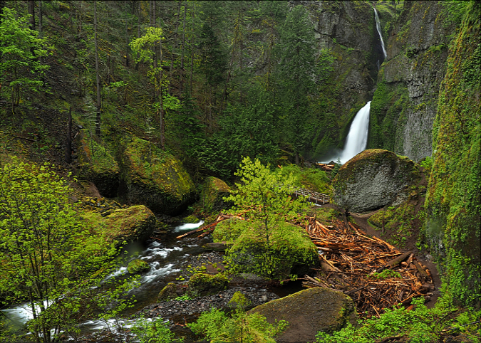 Getting that classic shot of Punch Bowl Falls during spring runoff usually entailed wading knee-deep into Eagle Creek to get a look into the hidden cavern that holds the falls. The cliff collapse has since changed things a bit. For now, there are a pair of good-sized boulders that landed in the entrance to the cavern, blocking the traditional view.