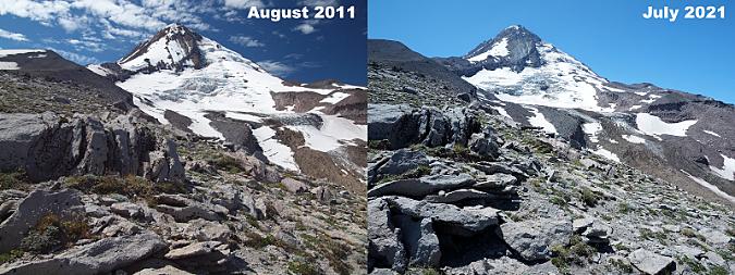 For July I selected another repeat spot, one of my favorite viewpoints of Mount Hood and the Eliot Glacier from the shoulder of Cooper Spur (below). I posted a look-back article on this area earlier this year to kick off a series of then-and-now photo retrospectives.