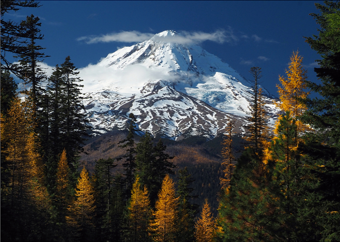 Northwest face of Mount Hood with early autumn snow
