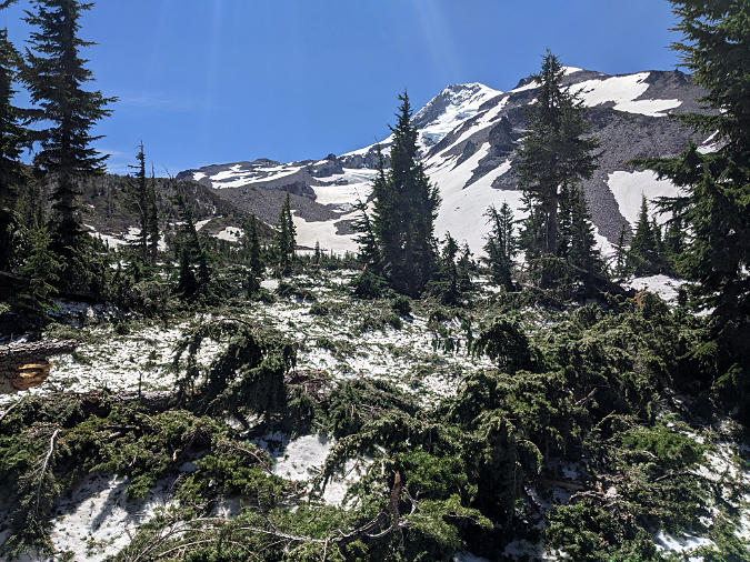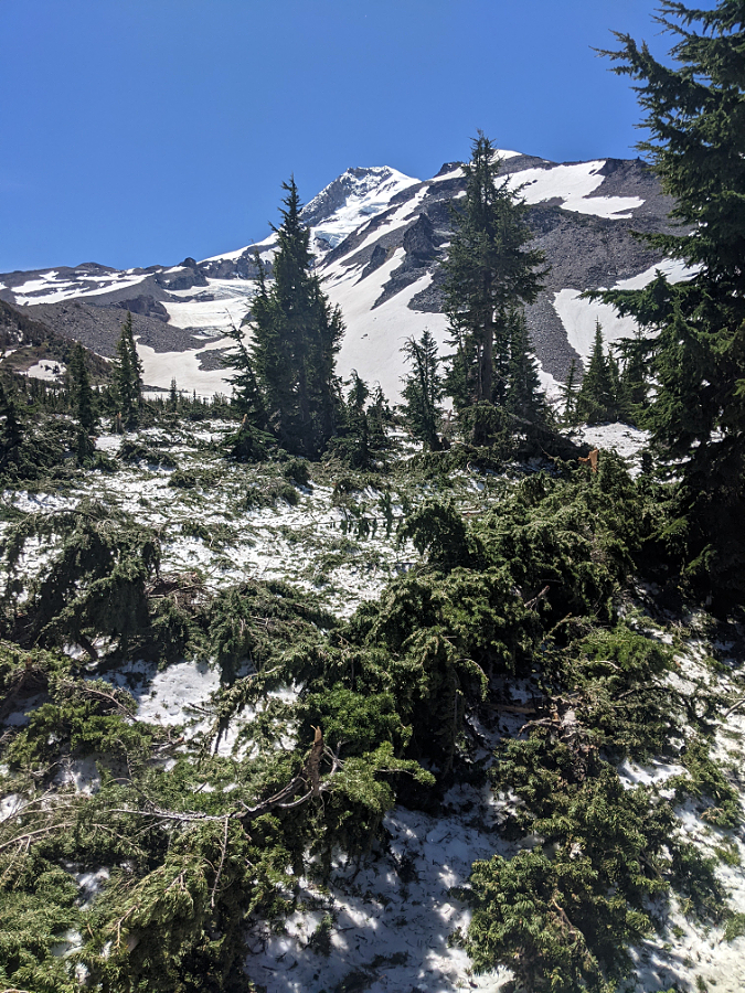 That’s not a pack on the hiker in the back — it’s their injured 30-lb dog that they were carrying out of the Mount Hood Wilderness. Keeping a dog on-leash is the best way to keep it safe from injury on the trail – though in this case, the trail proved too much for the dog, and it would have been a safer call to simply leave Fido at home for this hike