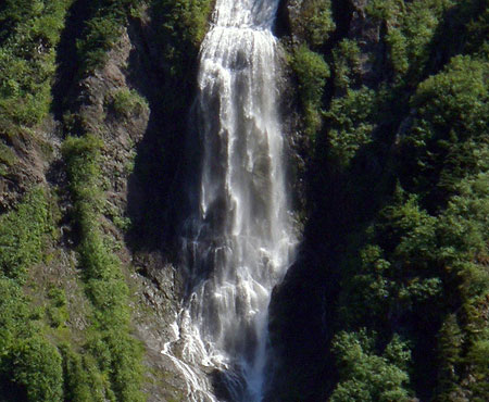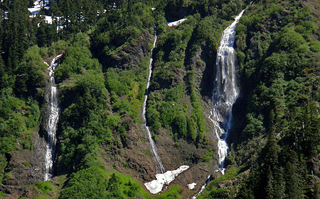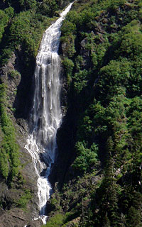 The scars from the 2002 collapse are still plainly visible today (below), but the debris fields it created downstream are rapidly being reclaimed by new forests. The landslide created new cliffs and steep walls within the upper canyon, including new waterfalls along the Muddy Fork where the stream suddenly plunged over the newly exposed bedrock.