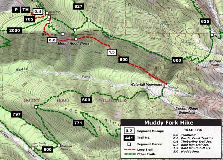 The story begins in the winter of 2002-03 with a massive debris flow triggered by a landslide in the upper Muddy Fork canyon. The event occurred sometime during the winter season, when deep snow-covered hiking trails, and thus went unnoticed until the snowpack cleared that spring. The event immensely powerful, mowing down whole forests and raising the valley floor of the upper Muddy Fork by as much as 20 feet. Whole trees were snapped off and carried downstream with the debris, forming huge piles that still give mute testimony to the power of the event.