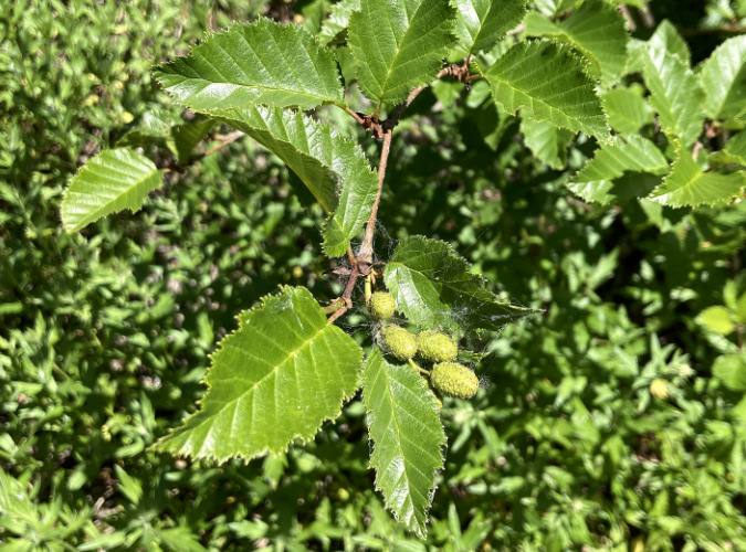 Twenty years into the recovery, I expected to find Sitka alder (below) dominating the young forests returning to the debris flow, as these tough, adaptable trees among the first to reclaim disturbed ground wherever it might occur. They are often called “slide alder” for their ability to survive in avalanche chutes, as they freely bend and give under the heaviest of winter snow loads, often popping new leads from horizontal, snowpack-flattened limbs. But alders have a super-power that is especially important in forest recovery: they are nitrogen fixers that enrich the soil as they grow, making them uniquely suited as pioneers in disturbed areas.