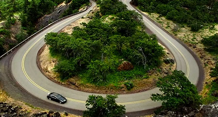 Close-up of the steep switchbacks on the east side of the bridge (State of Oregon)