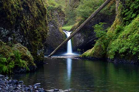 Getting that classic shot of Punch Bowl Falls during spring runoff usually entailed wading knee-deep into Eagle Creek to get a look into the hidden cavern that holds the falls. The cliff collapse has since changed things a bit. For now, there are a pair of good-sized boulders that landed in the entrance to the cavern, blocking the traditional view.
