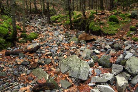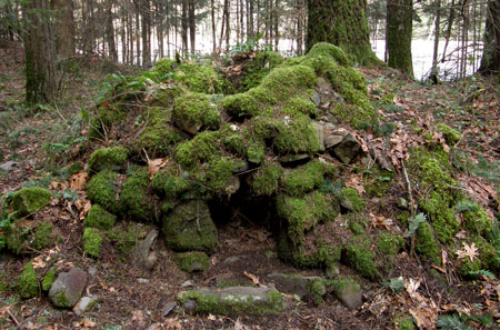 The east portal was similar to the west end of the tunnel, with stone masonry trim supporting the portal timbers (below).