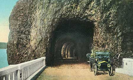 A new Oneonta Tunnel Museum could tell the story of Sam Lancaster’s inspiration for the famous windowed tunnel at Mitchell Point (below), another lost treasure along the old highway destroyed by modern freeway construction.
